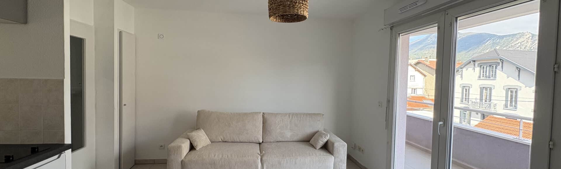 À louer, studio entièrement meublé de 20,16 m2, situé au 33 rue Maréchal Joffre à FONTAINE, avec une vue dégagée et un grand balcon de 14.81 m2 . Le logement comprend, Une pièce de vie lumineuse, meublé, Une kitchenette entièrement équipée avec frigo/congélateur, plaque de cuisson, micro-onde, lave-linge), Une salle de bains avec WC, Chauffage individuel électrique. Idéal pour un étudiant ou un jeune actif, ce studio offre un cadre de vie agréable et fonctionnel, à proximité des transports, commerces. Une cave vient compléter la location. Loyer mensuel : 600 EUR / Charges mensuelles : 27 EUR (provision mensuelle avec régularisation anuelle) / Dépôt de garantie : 1200 EUR - Honoraires d'agence : 231.60EUR / Frais d'état des lieux : 69.48EUR - Disponible immédiatement