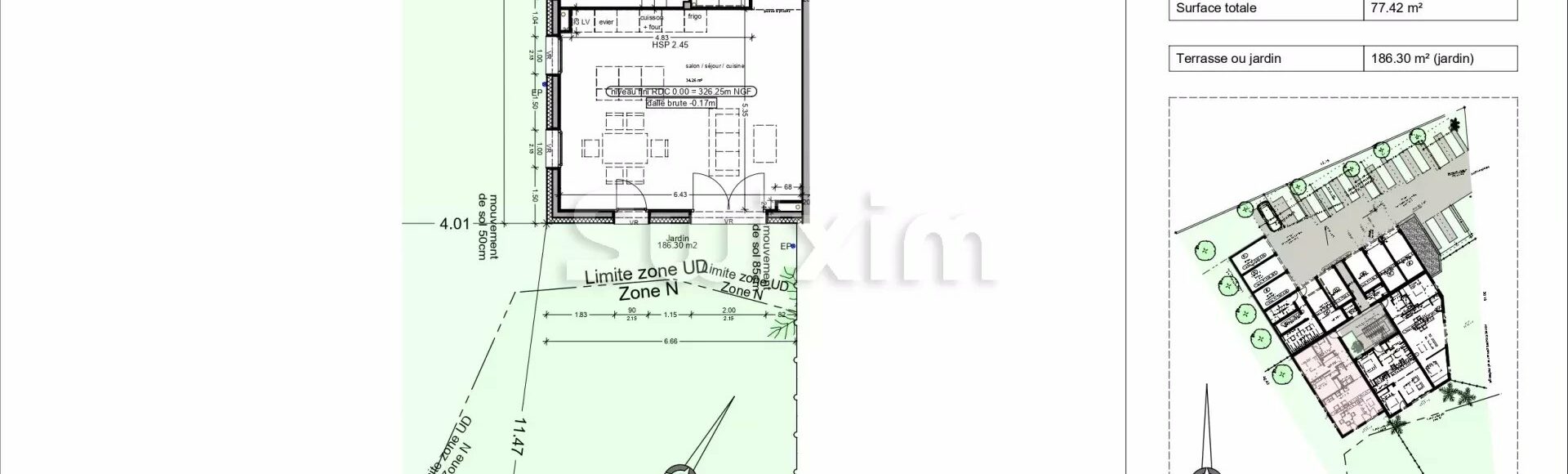 Superficie : 77.42 m²